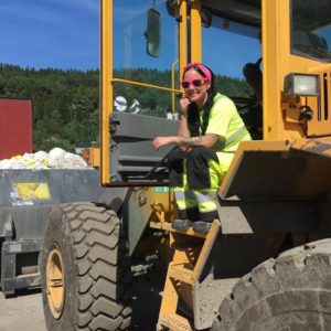 Les mer »Mari Holmvik er en av flere kvinnelige arbeidere hos Innherred Renovasjon i sommer. Våre gjenbrukstorg og renovasjonsbiler går som normalt, og det trengs sjåfører av store maskiner ved vårt behandlingsanlegg på Mule.